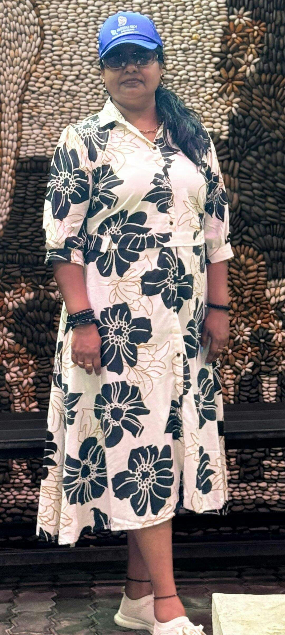 absolutely loved this floral printed dress. The material is soft and flowy, giving it a very comfortable feel. The floral print is vibrant yet classy, making it perfect for both day and evening wear. The fit is just right and it looks very flattering. Definitely a great buy!